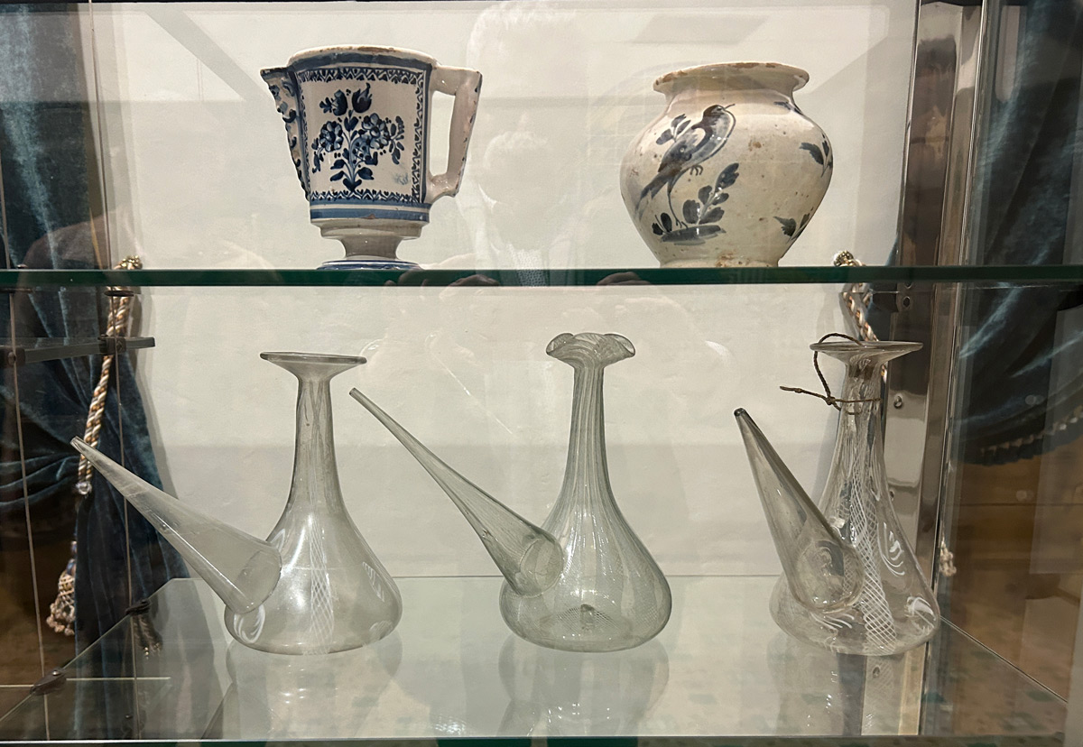El Museu Diocesà de Solsona exposa en una vitrina on hi trobem algunes peces de ceràmica i altres de vidre català, tres porrons de tipologia del segle XVIII.